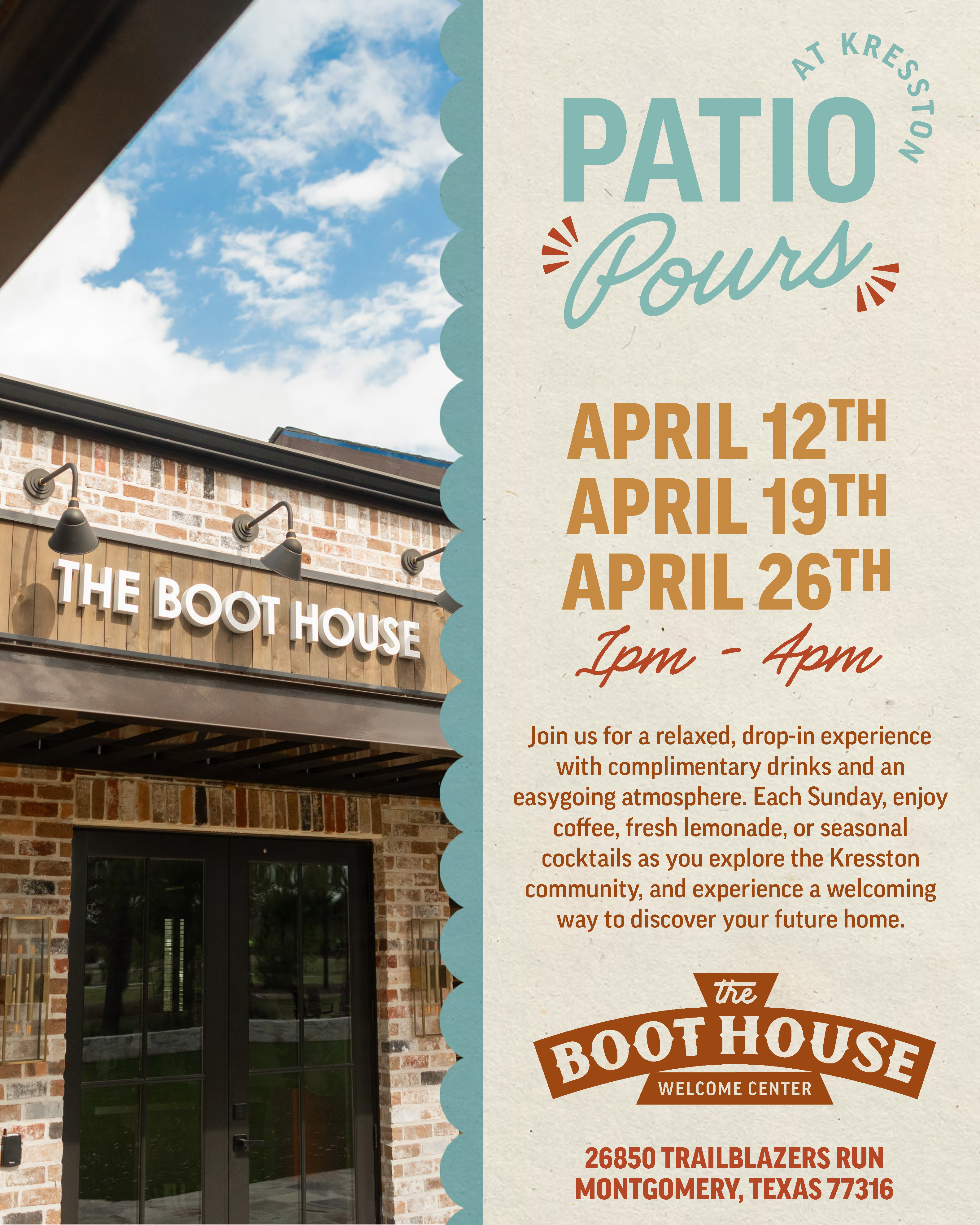 Join us for a relaxed, drop-in experience with complimentary drinks and an easygoing atmosphere. Each Sunday, enjoy coffee, fresh lemonade, or seasonal cocktails as you explore the Kresston community, and experience a welcoming way to discover your future home.